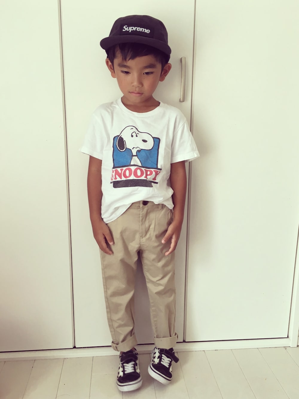 ついでに息子コーデも今日はこんな感じです👦🏽💓 チノパン、最終SALEで激安でした😚 キャップはこないだの立ち上げでオンラインでGETしました🤤