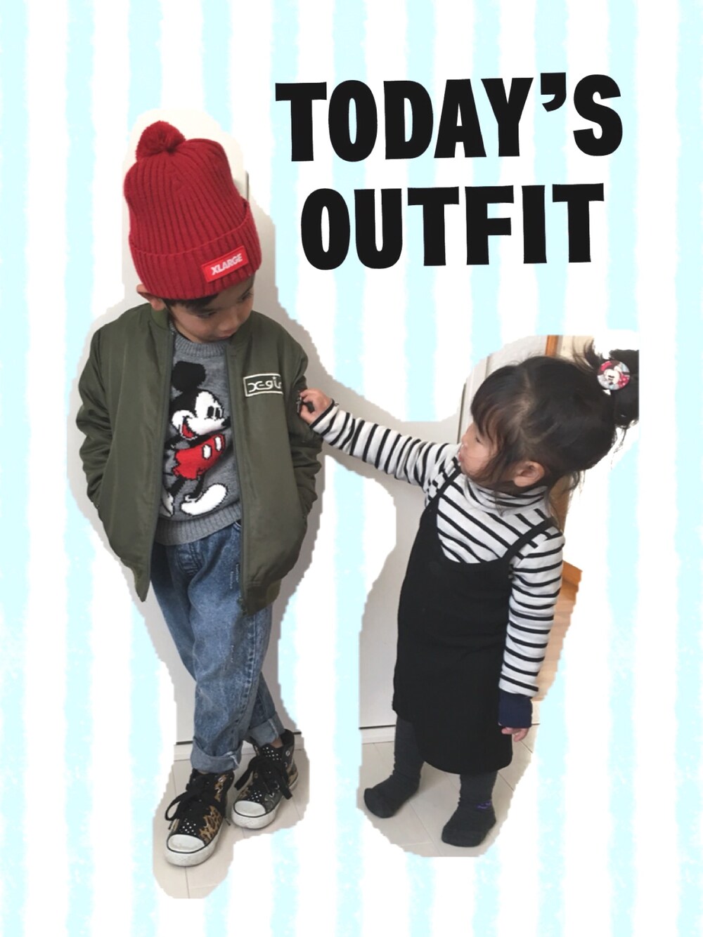 最近買ったマムジーンズコーデ♡ 細いからスキニーばっかりの兄貴だけど たまには太めの古着っぽい感じもあり♡ 妹は撮るつもりなかったんだけど 入ってきたから♡ 昨日の妹ちゃんのコーデ気に入ってたのに 撮るの忘れた😂