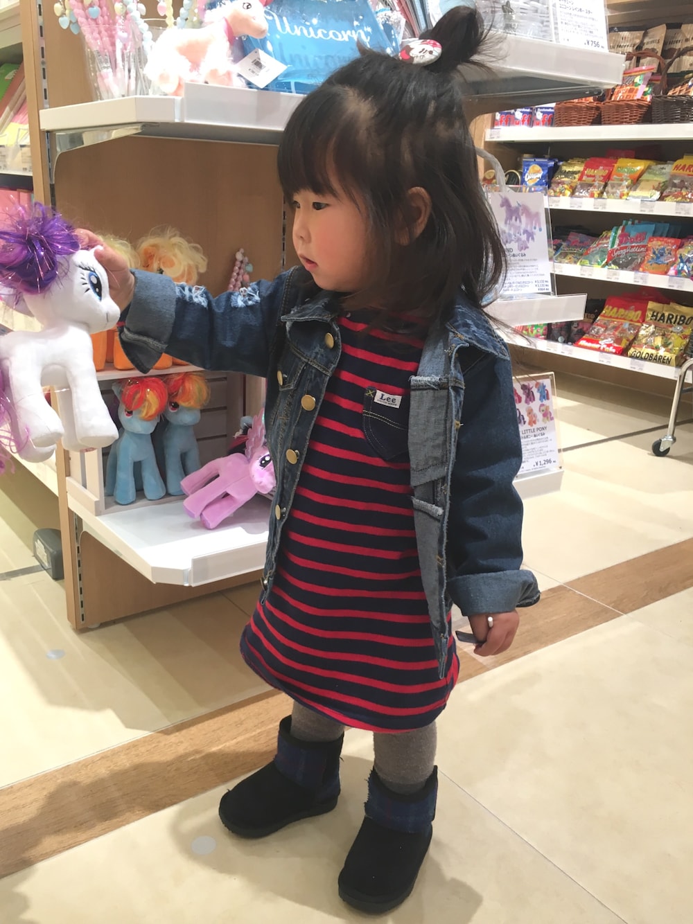 今日はパパとにぃににバレンタインチョコ買いに プラザにお買い物行ってきたよ♡ バレンタインだから女の子らしい格好にしてみた👧🏻❤️