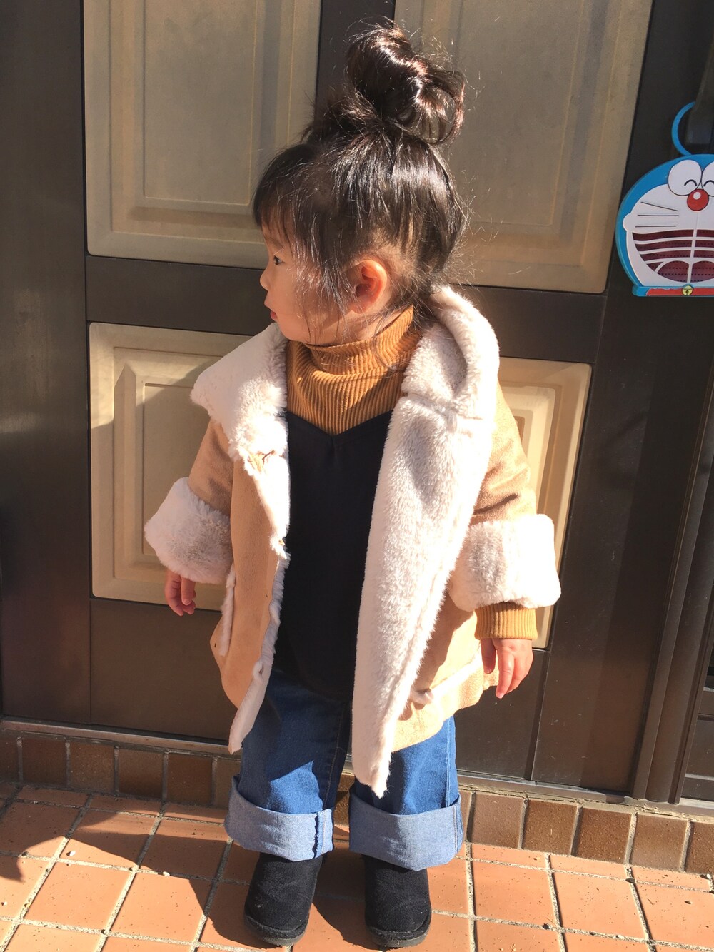 今日もデニムワイドパンツ着回しコーデ♡ このムートンももう今季は終わりかな😂 可愛すぎてもったいなくて あんまり着せなかった😂 次の冬はたくさん着せよう😊💓