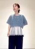 夏にぴったりな爽やかブルーコーデのご紹介です。 トップスはお袖が透けていて涼しく着ていただけます。