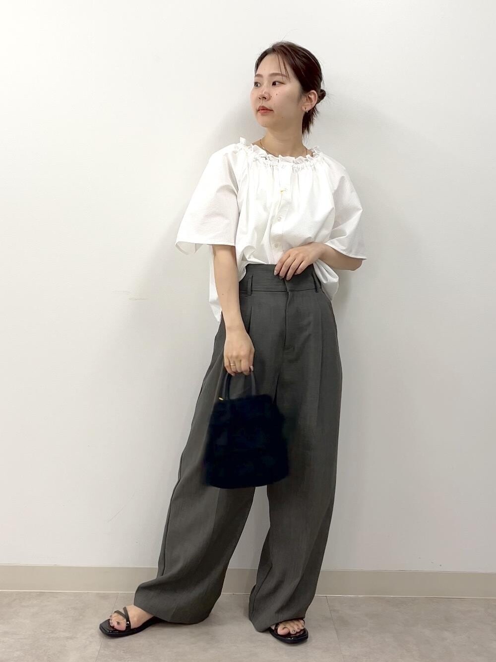 オフショルダーにパンツを合わせて甘すぎない肌見せコーデにしてみました。