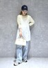 レースのビスチェにキャップとスニーカーでカジュアルダウンさせたレイヤードコーデです。