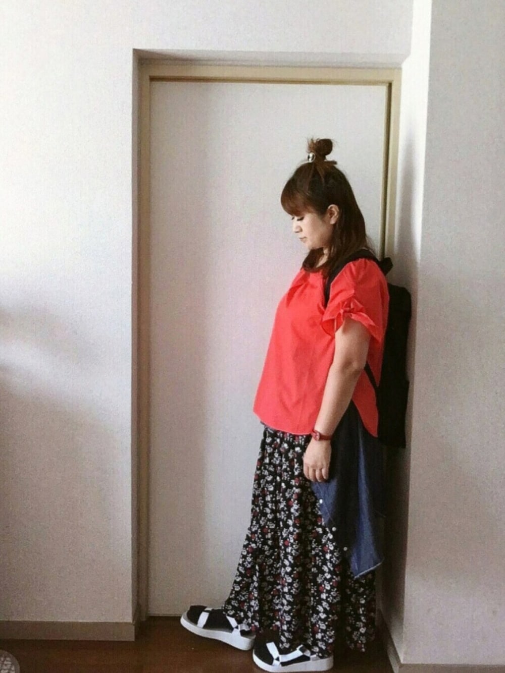 冷房が苦手で、車の窓全開にして走ってます 後ろからピッタリ迫られる車にも、動揺せず?制限速度より遅いスピードで、自分なりの運転🔰 車線変更と、右に曲がる時、直進車の合間見て曲がるタイミングが苦手だった事に最近気づいた code*・゜゚・*:.。..。.:*・'(*゚▽゚*)'・*:.。. .。.:*・゜゚・* 今日は迷わず赤 う-ン。。なんかイロイロ疲れや悩みあってか、赤カラ-から元気もらいました そこに花柄のロングスカート ヘアアレンジは、ハ-フアップのお団子に。 まだまだ苦戦しております 温かいハ-ト大切にさせて頂きます ありがとうございました✨