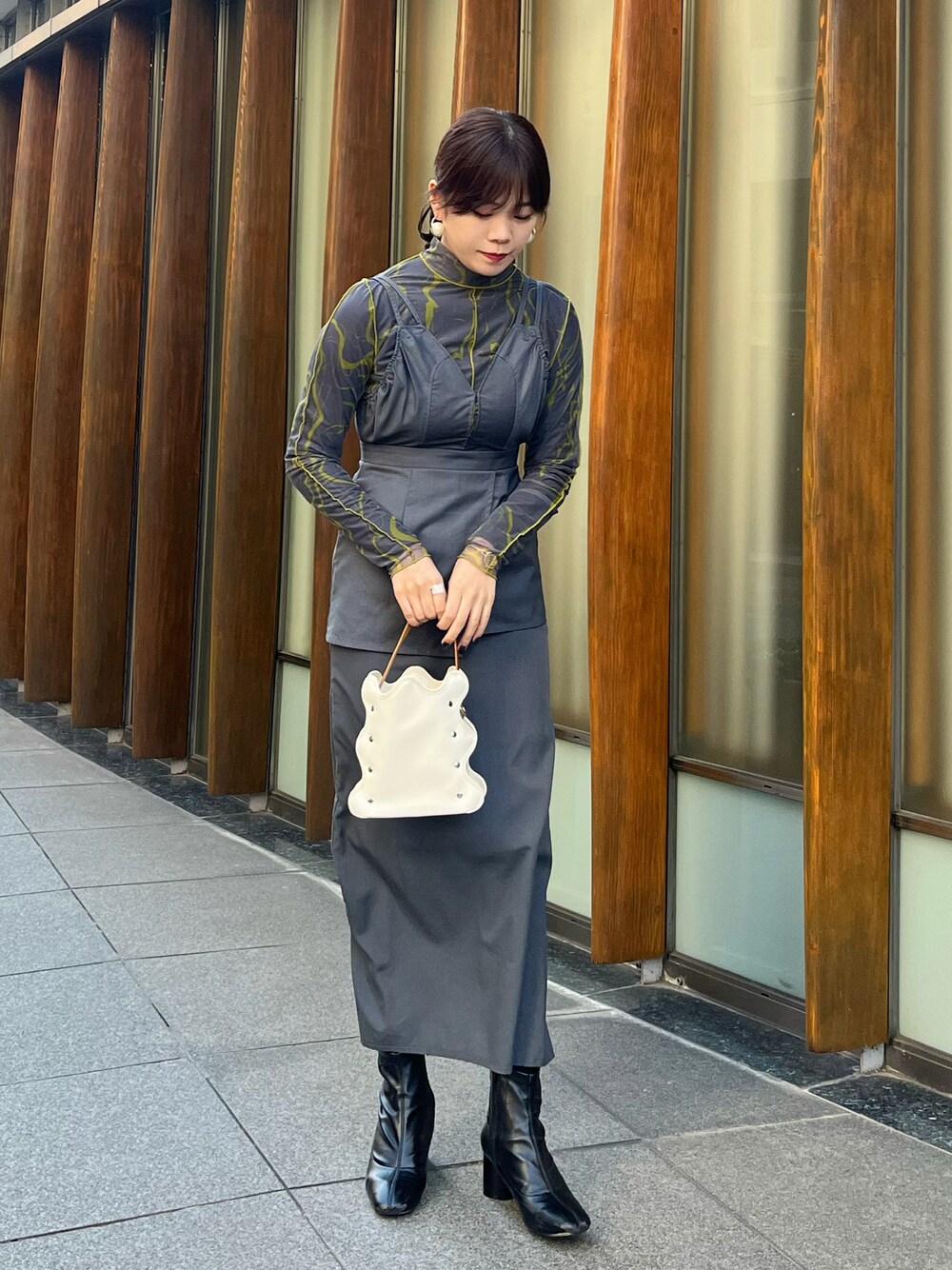 冬でもシアートップスを着たいので中にニットを着て合わせてみました◎ ワンピースはレイヤードのようなデザインなので1枚でもオシャレに見せてくれるのが嬉しい!