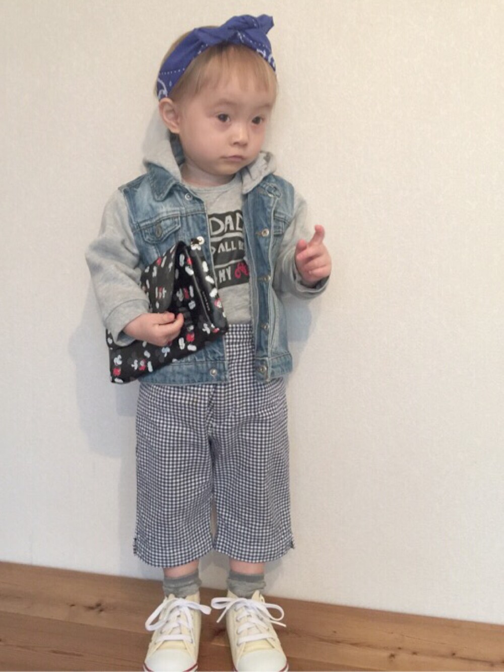 お腹が出てて、なかなかしまらず、、😬 コンバース気に入ってくれてよかった😊✨ 朝からグズグズだったけど、ご機嫌になりました💕💕