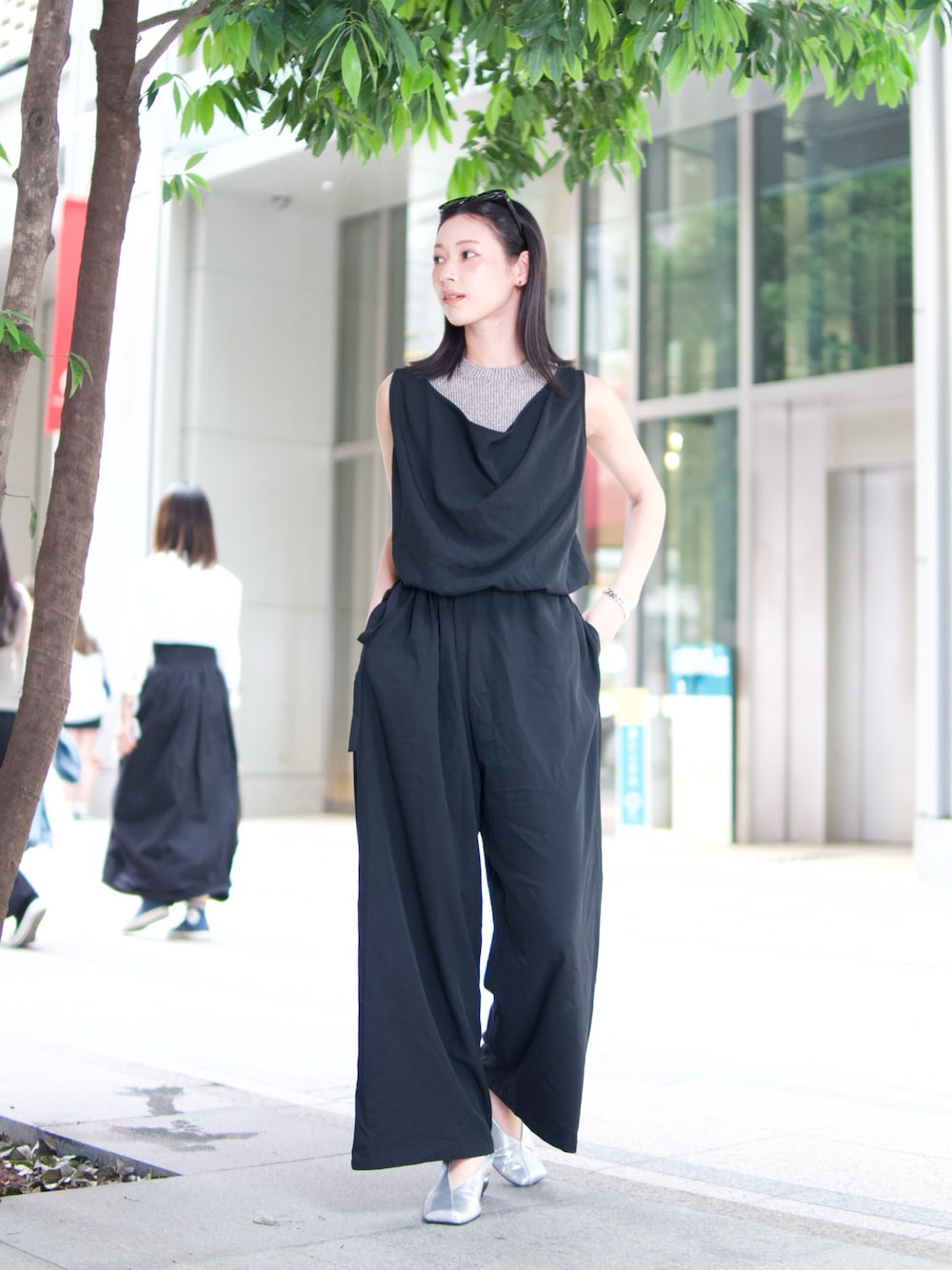 Hinariのサロペット/オーバーオール「【tageechita】リラックス感漂う ノースリーブ ドレープネックワイドサロペット」を使ったコーディネート
