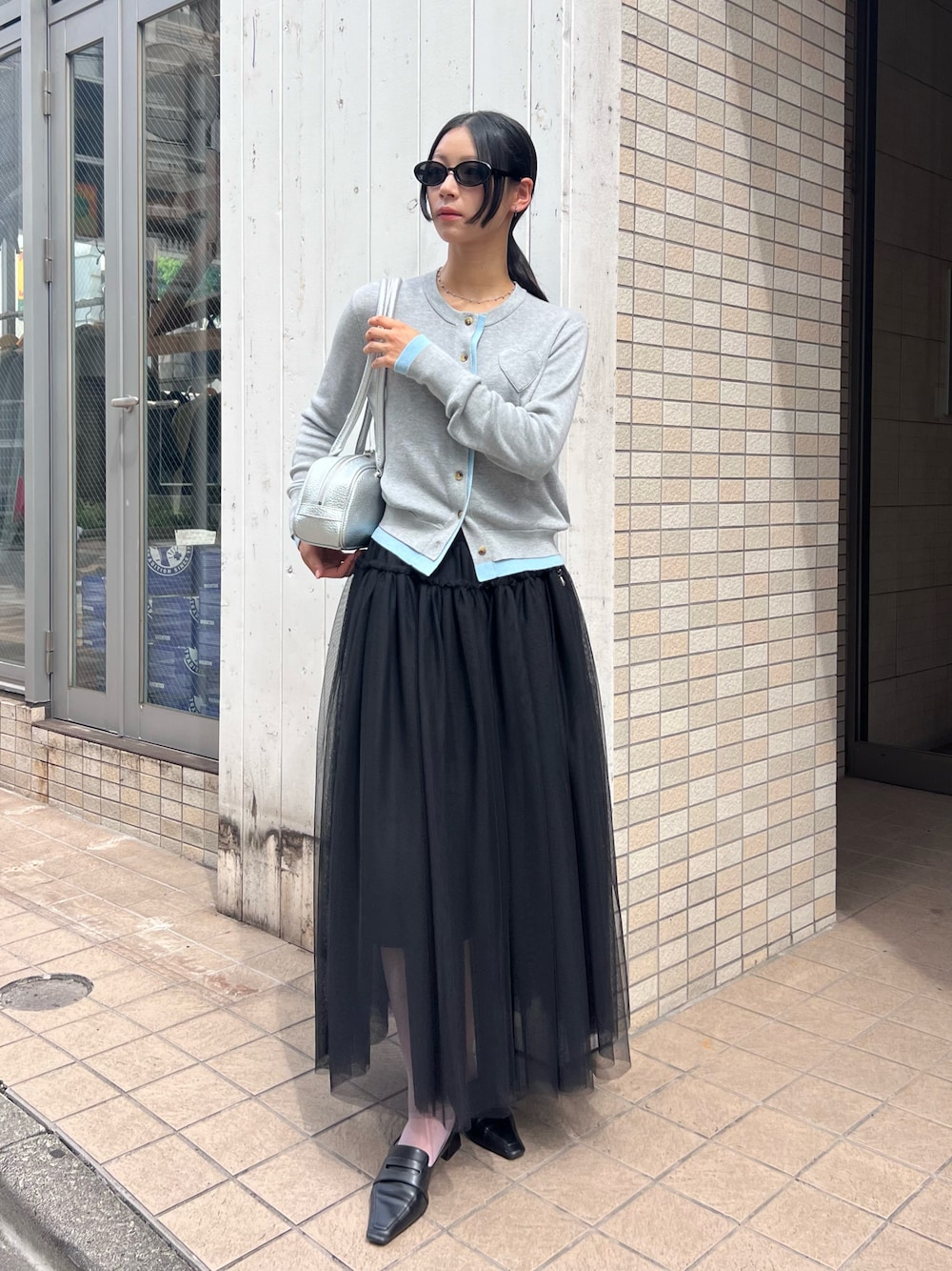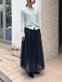 レイヤードデザインのカーディガンで今っぽく ボリュームのあるチュールスカートは存在感ある👀