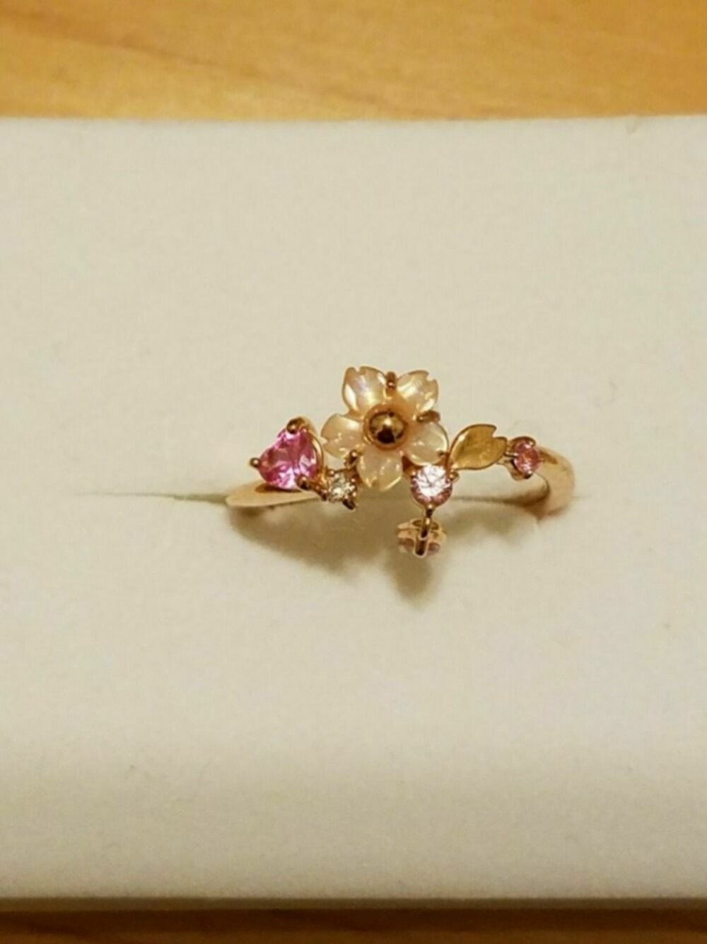 桜のリングです。ソメイヨシノは散ってしまいましたが、指は桜満開です✨