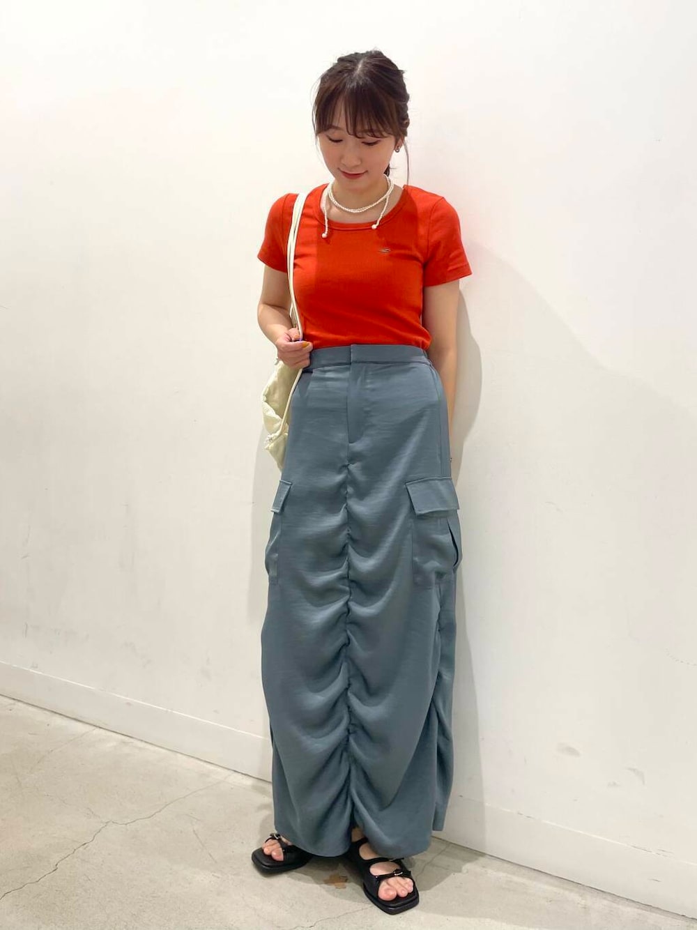 ご覧いただきありがとうございます🐥 夏全開のカラーコーデ😎 赤×グレーの組み合わせが可愛すぎる🫶🏻 トップスはラウンドネックで首元がきれいに見えます♪ スカートは光沢感のあるサテン生地が上品な印象🌹 カーゴデザインなので程よくカジュアルダウンされていてどんなコーデにも合わせやすいです🧚🏻♀️✨ ぜひお試しください💓