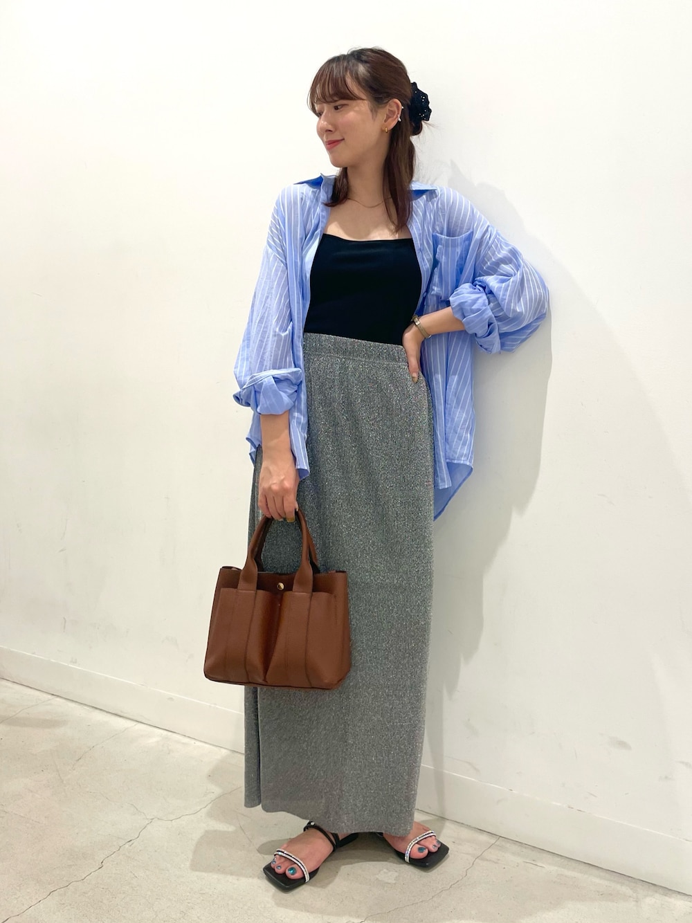 ご覧いただきありがとうございます🐥 ブルーシャツを秋仕様にチェンジ🍂 合わせるアイテムを暗色にするだけでもかなり印象が変わります! スカートは裏地がさらっとしてるので、履いていてもラメならではのゴワゴワ感がないです🙆🏻♀️ ぜひお試しください💓