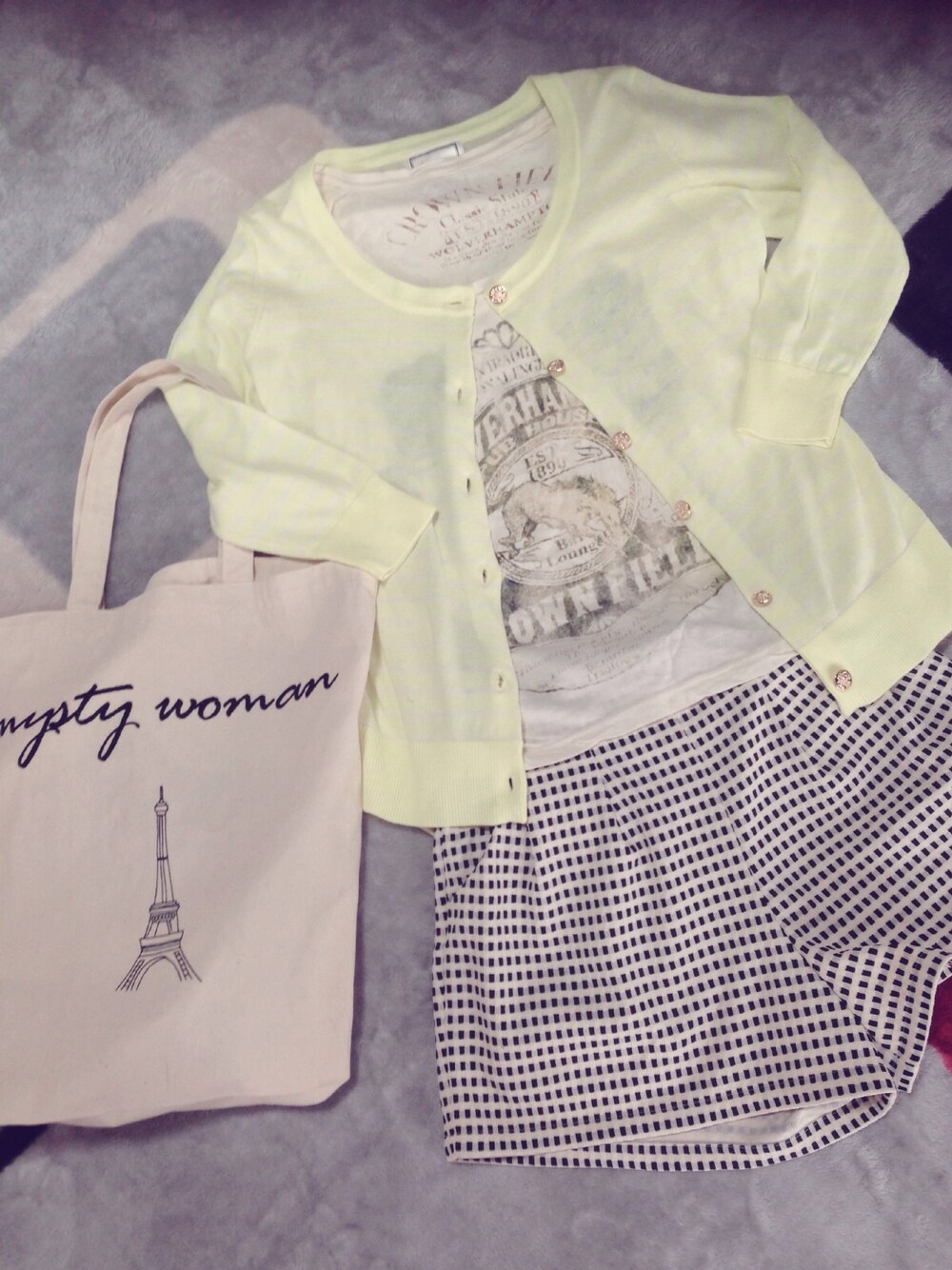 昨日ミスティさんのシークレットセールでゲットしたボーダーカーディガン(♡ˊ艸ˋ) 黄色のカーディガンとか初めて買ってみたw ミスティの天王寺のワカメちゃんみたいに可愛く着たい(=゚ω゚)ノ Tシャツはかなり前からヘビロテしてるミスティTですよヾ(´∀` *) さわやかでいいよねwww