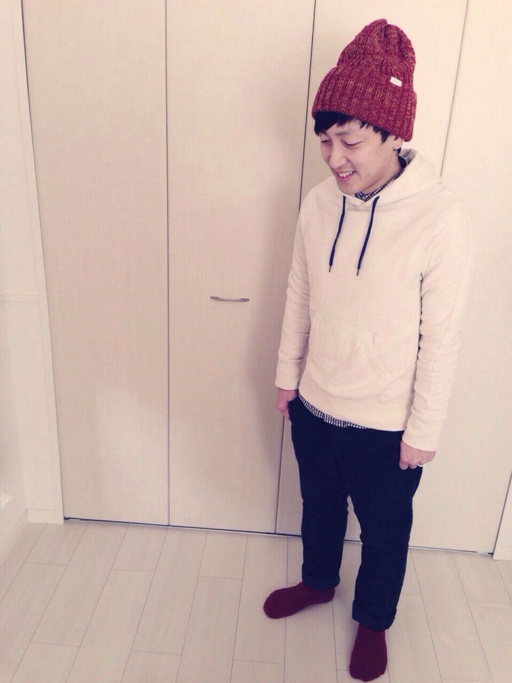 今日は家族でお出かけなので、息子の服と色を合わせたところ、前回アップしたコーデと色がカブってました(笑) 服は全然違うものですので…^_^ ニットと靴下を 赤で合わせてみました!