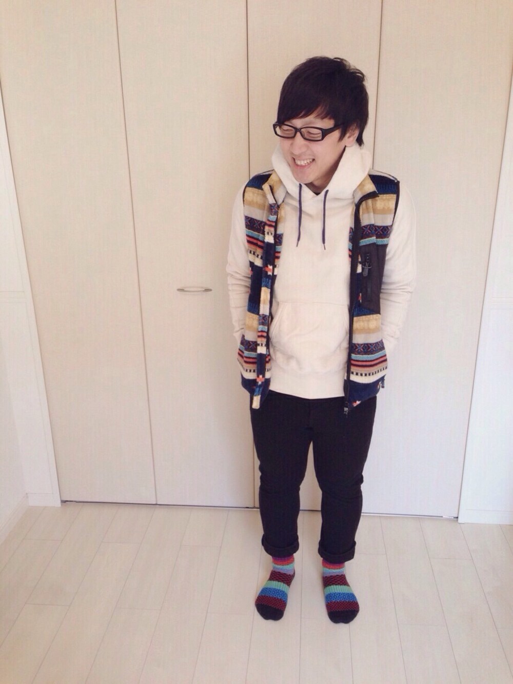 最近着ていなかったベストを着てみました! 足元もベストの柄と合わせてみました! 今日は少しあったかいので、アウターはいらないかな^_^ 今から家族でお出かけです(^o^)