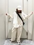 ワントーンメンズライクコーデ☺︎ アイボリーで明るく爽やかにメンズライクなコーデです♡ ゆったり大きめのロンTにワイドシルエットなパンツでだぼっとゆるっと♡ ショルダーはカーキで締めました♡ メンズライクな中に、パンツのシャイニーなラメが華やかさをプラスしてくれます♡ ぜひお試しください☺︎