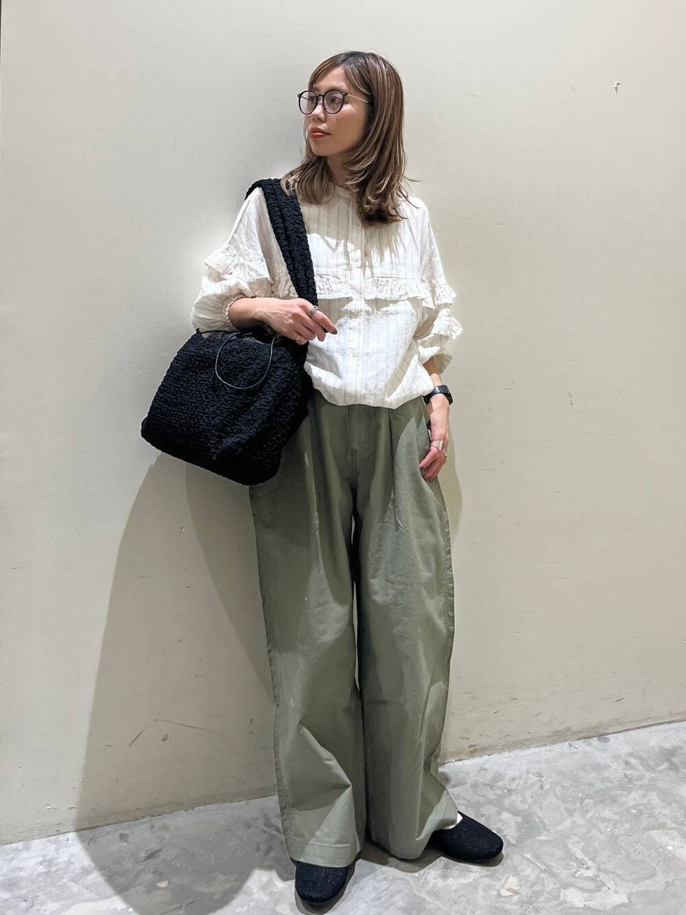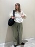 リネンブラウスコーデ フリルが甘い印象のブラウス♡ この時期のシャツやブラウスはレイヤードに使えたり羽織にしたり気温に合わせて着回せて便利!! バギーパンツ合わせでカッコよく♡ ぜひお試しください☺︎