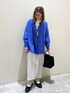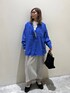 レイヤードコーデ☺︎ リネンの大人シャツをカジュアルに♡ ボタンを開けておしゃれなロゴ見せ♡ リブパンツだけでもいいけどラップスカートでアクセント♡ ぜひお試しください☺︎