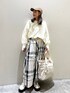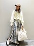 チェックスカートコーデ☺︎ 春夏着たくなる柄スカート♡ 軽くてサラッと着られる春夏にぴったりのスカート♡ 白ベースで明るいトーンで揃えて気分も明るく!! ぜひお試しください☺︎