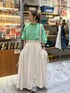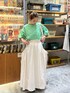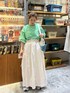 ガーリーコーデ☺︎ 毎度人気のランタンボリューム袖のカットソー♡ ボーダーが春夏にぴったり!! ゆったりしたシルエットで体型カバーにも最適です! ボリューミーなスカートと会わせてガーリーに♡ ギャザースカートは大きなポケットがポイント♡ ぜひお試しください☺︎