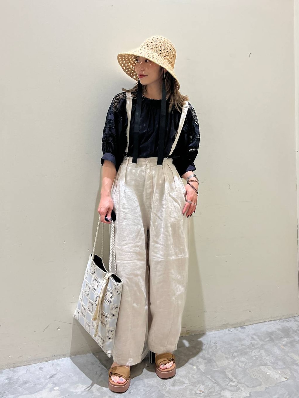 大人ナチュラルコーデ☺︎ 憧れのナチュラルスタイル♡ 大人っぽい組み合わせで夏も涼しげに♡ ブラウスはふわっとしたシルエットで女性らしさ抜群! 肩の部分のスクエアモチーフでさりげない肌見せを。 リネンのパンツとの相性抜群です! ぜひお試しください☺︎