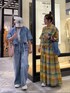 セットアップで親子リンクコーデ☺︎ デニムのセットアップにチェックのセットアップ♡ バッグは逆転してチェックとデニムをそれぞれ持ってリンクコーデ☺︎ ぜひお試しください☺︎!
