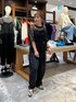 ブラックコーデ☺︎ テロテロメタリックとシャカシャカパンツで大人のブラックコーデ♡ バルーンパンツのカジュアルさとヘルシーな肌見せのバランスが良くておすすめ! ぜひお試しください☺︎