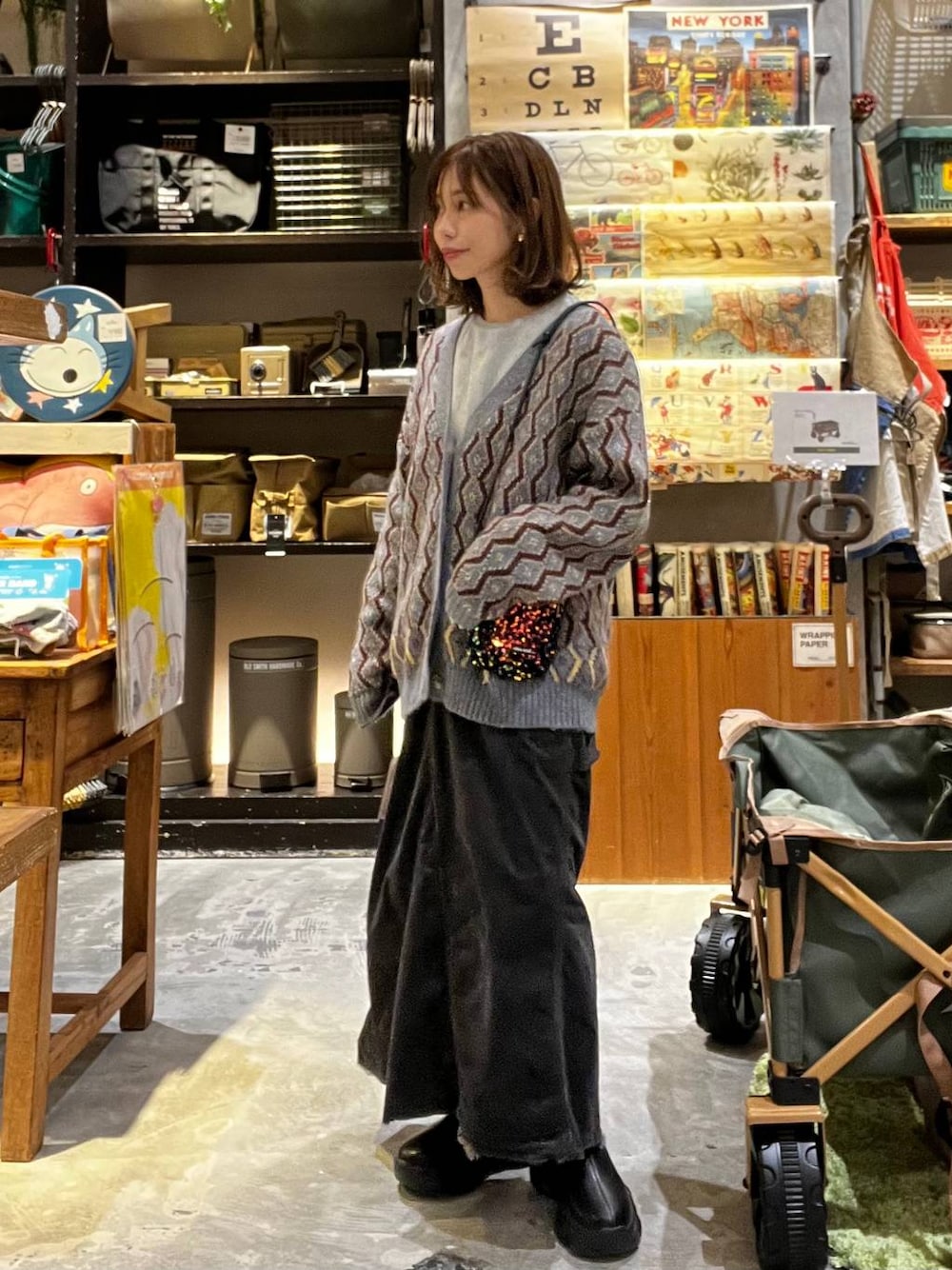 カーディガンコーデ☺︎ リアルバイのカーディガンとスカート♡ 柄のカーディガンで一つ持ってると便利! アウターからチラッと見えても可愛いし、ゆったりサイズで体型カバーもできるし、 温かい♡ ぜひお試しください☺︎