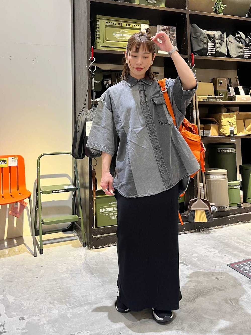メンズシャツコーデ☺︎ パッチワーク風が可愛くておしゃれ! 大きめサイズのシャツにタイトスカートのバランスが体型カバーできてオススメ! ぜひお試しください☺︎