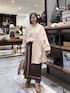出勤コーデ☺︎ やりたかったスカーフアレンジ♡ ビッグシャツとの組み合わせも可愛い♡ 片側の裾だけインしてバランスをとって。 ぜひお試しください☺︎