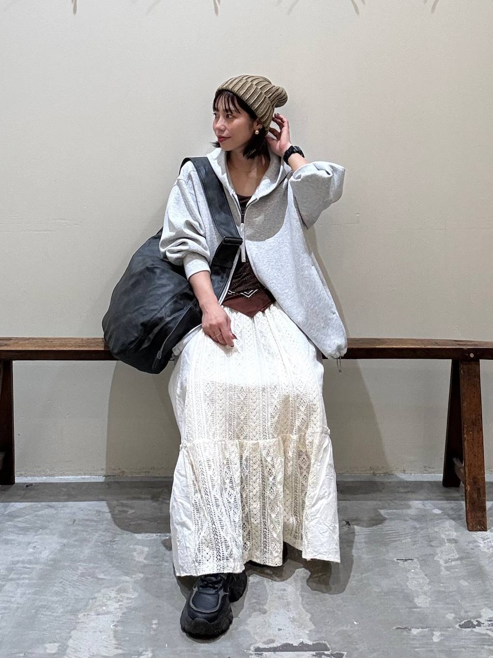 出勤コーデ☺︎ 大きめパーカーをガーリースカートに合わせて 大人カジュアルスタイル♡ ぜひお試しください☺︎