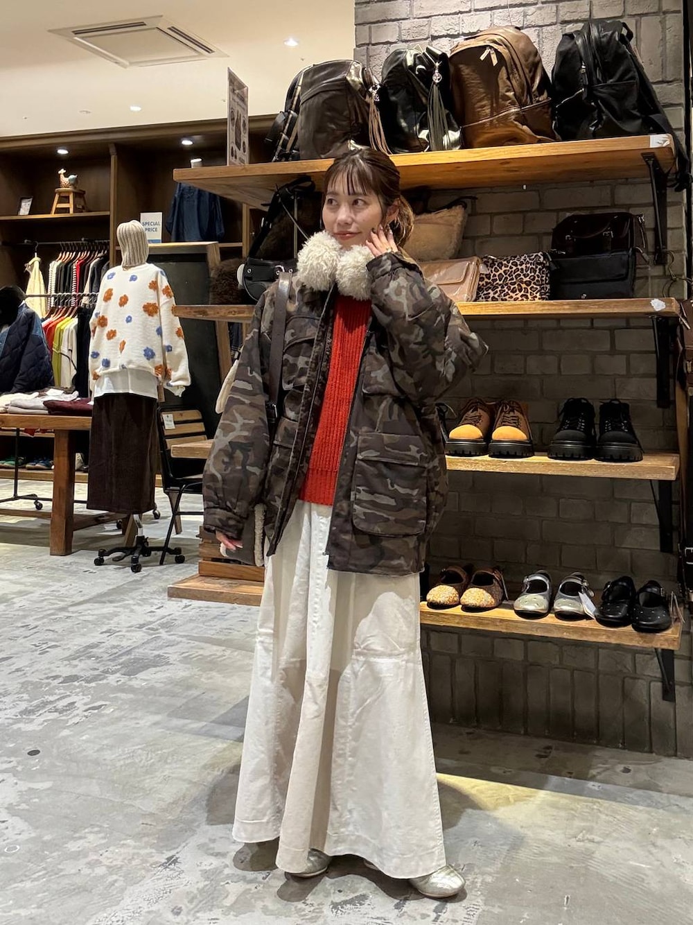 ガーリーミリタリースタイル☺︎ ミリタリーなニットにミリタリージャケットを♡ リメイク風スカートとの相性がいい♡ ジャケットのカモフラがブラウンで落ち着いてて大人っぽカジュアルができちゃう一枚! ぜひお試しください☺︎
