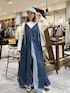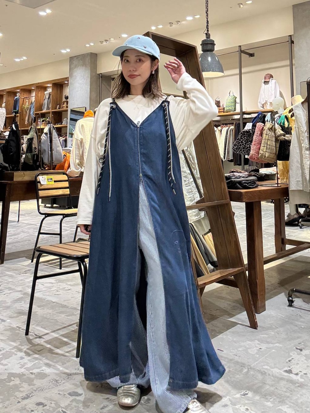 違うカラーでデニムのセットアップコーデ☺︎ ジャンスカがダブルジップだから裾の方だけ開けて縦長効果でスタイルアップ♡ ぜひお試しください☺︎