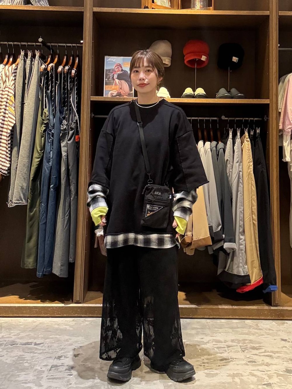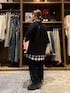 メンズトップスモノトーンコーデ☺︎ メンズのレイヤード風アイテムはLサイズでゆるだぼっと♡ 中3の息子に買ったけど借りて出勤コーデ♡ モノトーンでゆるっとしてるけどレースのカバーパンツでどこか女性らしく! ぜひお試しください☺︎