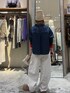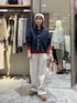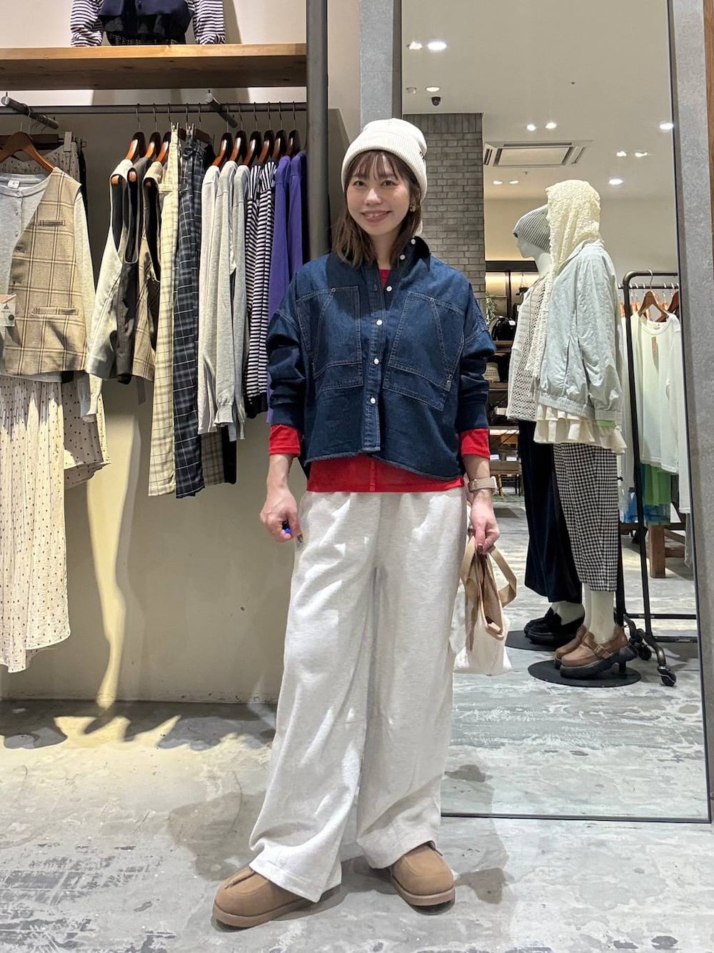 デニム×スウェットパンツコーデ☺︎ 赤いメッシュトップスで差し色! ぜひお試しください☺︎