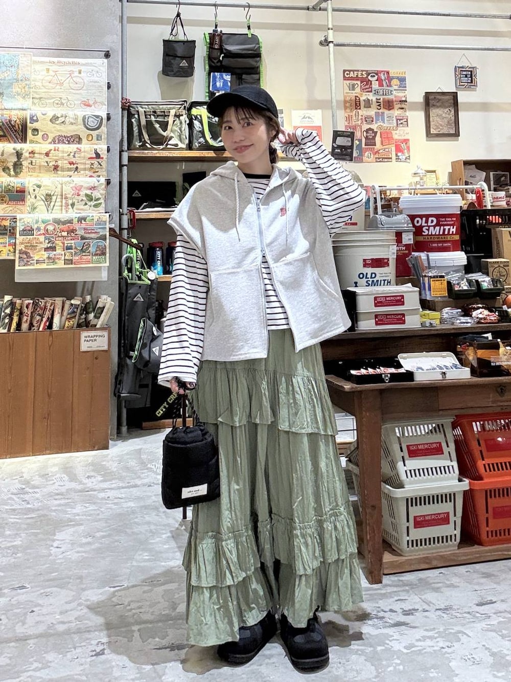 TOM and JERRYコラボコーデ☺︎ ヴィンテージ感のあるイラストがたまらなく可愛くて普段のスタイルにも馴染む! フードベストはかなり長期間使えてオススメ♡ スカートにも合わせやすい丈感です♡ ぜひお試しください☺︎