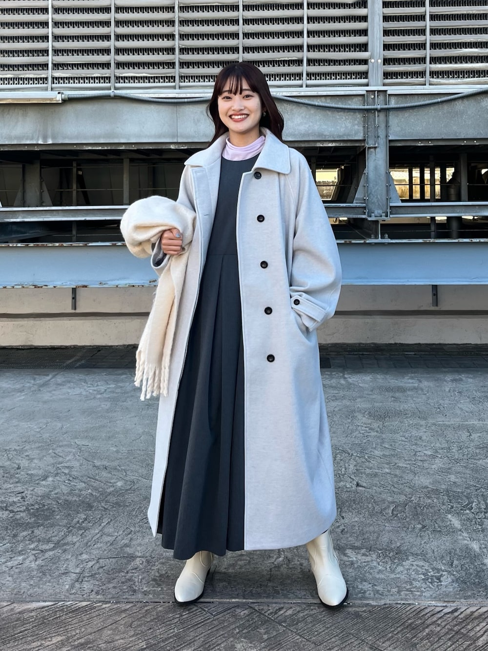 Hina(KBF ルミネエスト新宿)のステンカラーコート「コクーンロングコート」を使ったコーディネート