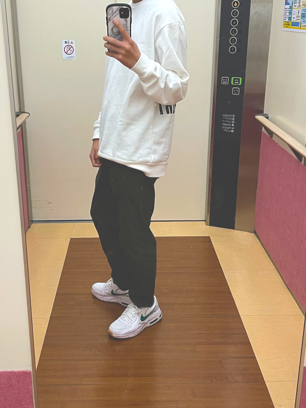 カンゴールのスウェットに GUのグリーンパンツに エアマックス