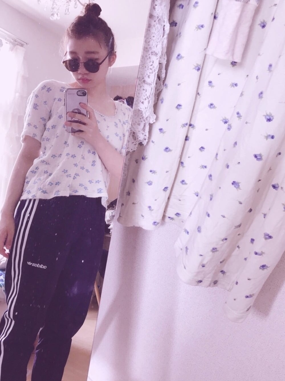 小花柄の半袖のサーマルにadidasジャージで甘辛くコーディネートしました(*゚v゚*)