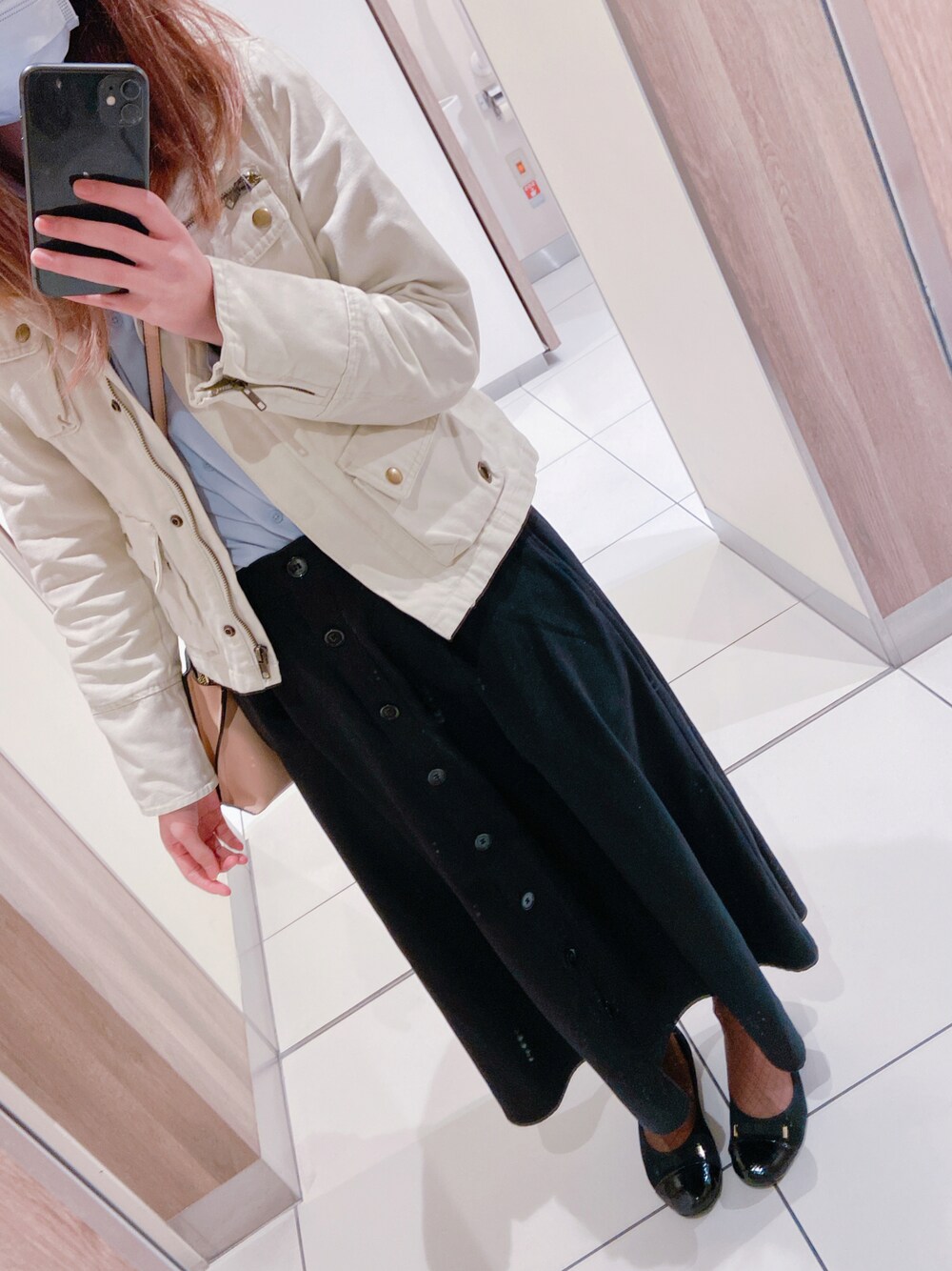今日の仕事着。 肌寒いやろけどお下がりのジャケット可愛くて下ろした(๑╹ω╹๑)