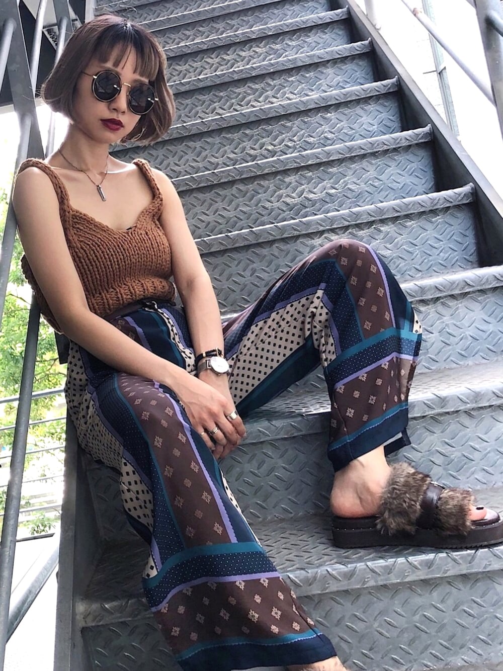 オールブラウンのワントーン まだ日中は暑いけど ニットビスチェやファーサンダルで 徐々にアイテムは秋らしいものを でも、重たく見せたくないので 肌見せは必須😎 Instagram▶︎@hinechi_pageboy 毎日コーデ更新中💫 TOPから見てみてね◡̈♥︎