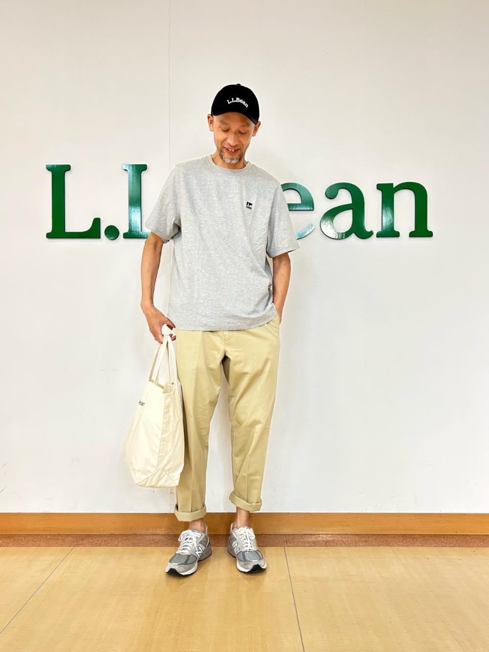 今日の出勤スタイル 短パンばかりで、久しぶりの長パン履きましたが、やっぱり暑くてロールアップ。定番のダブルエルチノはセンタークラークス付きなので、上がTシャツでもカジュアル過ぎずキチンと見えるのでお気に入り。 定番のアンシュリンカブルTで、私の一番おすすめカラーはGray Heather。グラフィックも無地も、いつもこのカラーを選んでしまいます。いわゆる杢グレーと言われるカラーで、各社グレーの濃さや色な混ざり具合がある中で、L.L.Beanのこのカラーが絶妙だと個人的にはオススメです。