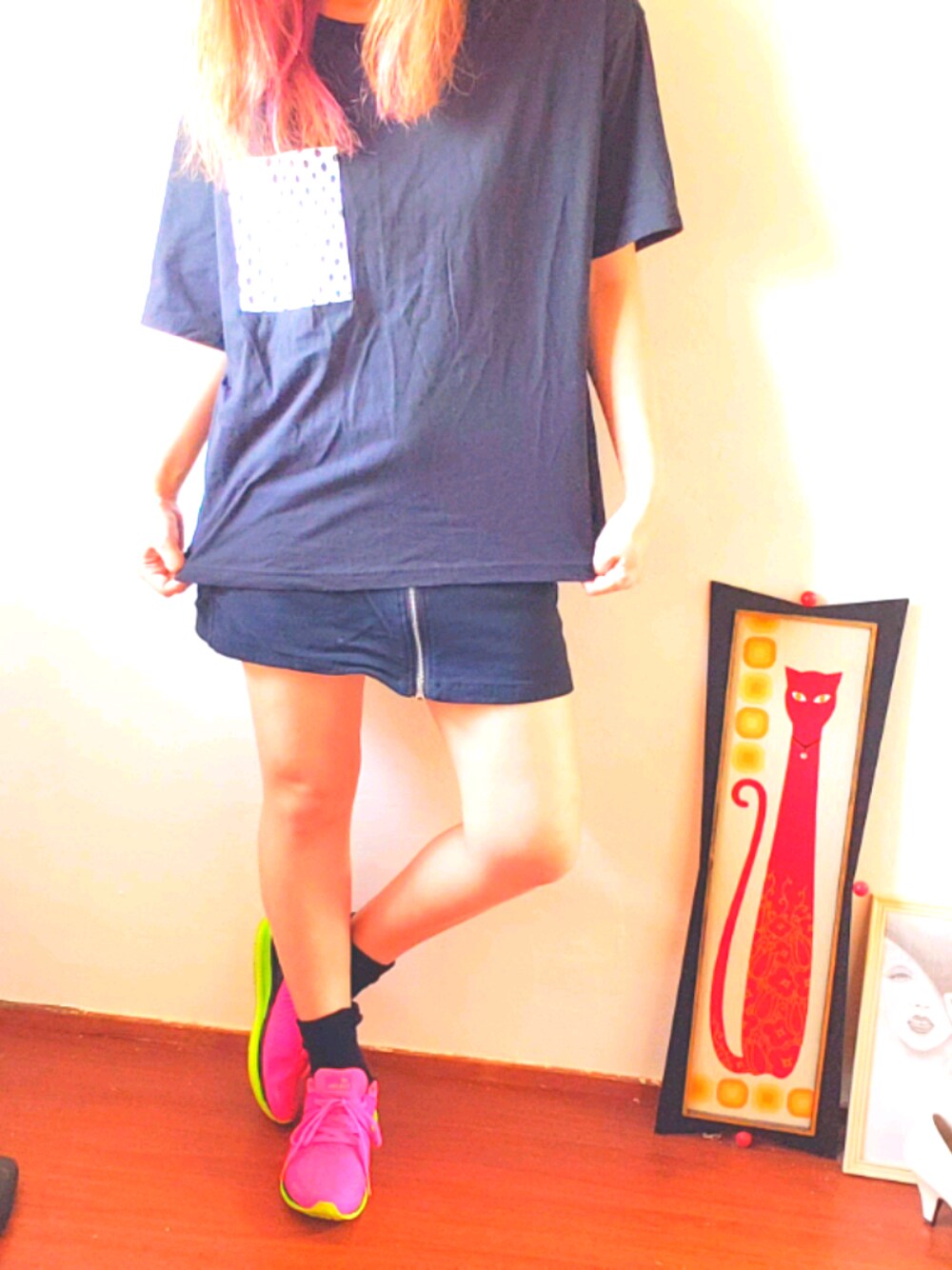 曇のちお出かけ モノトーンコーデ…色がないとソワソワしちゃうので靴はピンクですw しかもTシャツしわしわだから手で伸ばして誤魔化しちゃうw いつもいいね、お気に入り、フォローありがとうございます^^*