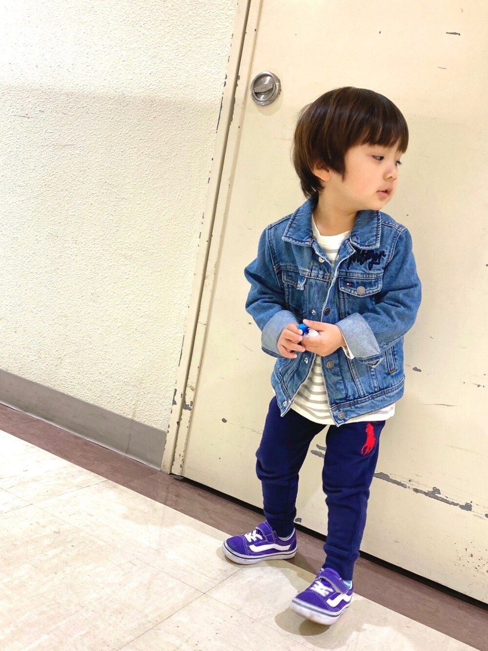 【アウター】Tommy hilfiger/110cm 【トップス】無印良品/100cm 【パンツ】Polo Ralph Lauren/3T 【スニーカー】VANS