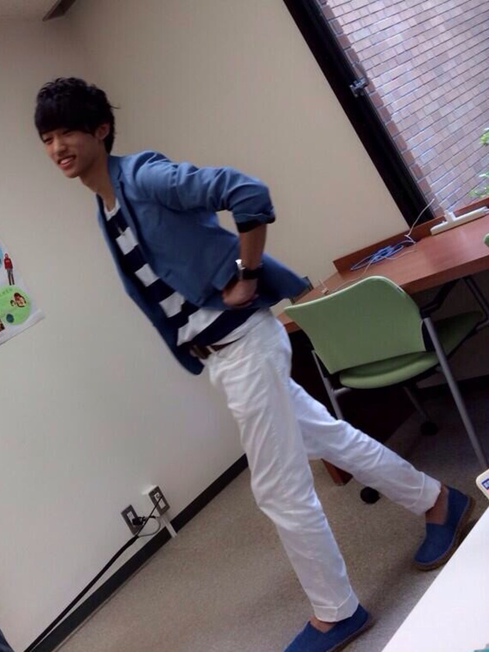 大学での一枚ー 今日大学のパンフレット撮影の時いつの間にか友達が撮っていたやつを使いましたー 上はHAREのジャケットでエスパと色合わせてみましたー^ ^ 綺麗目が好きなので結構この格好気に入ってます^_^ ベルトはDIESELネックレスはSHIPSです!