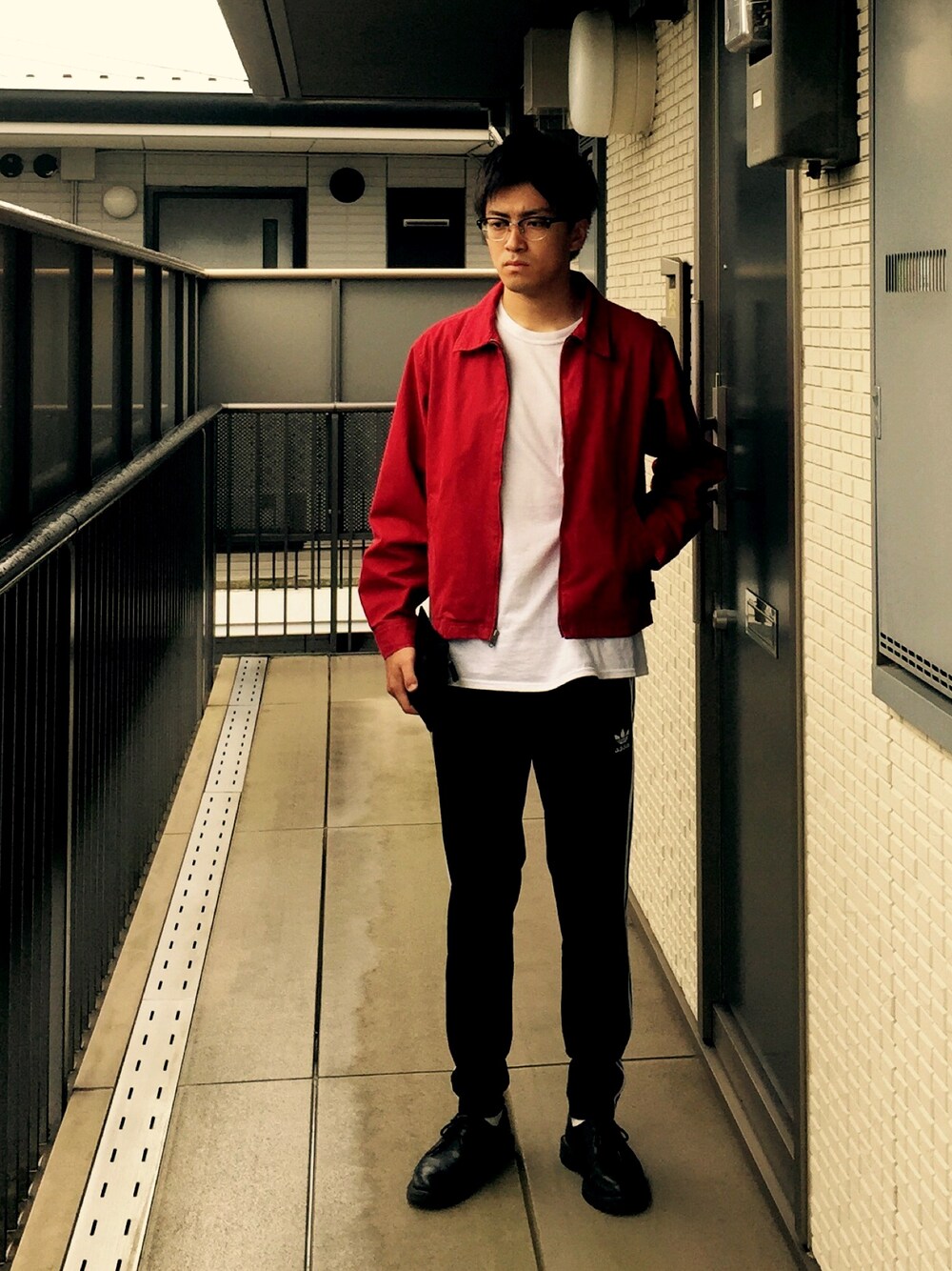 秋を意識したコーディネート。古着の真っ赤なGAPのブルゾンはかなりお気に入りです。