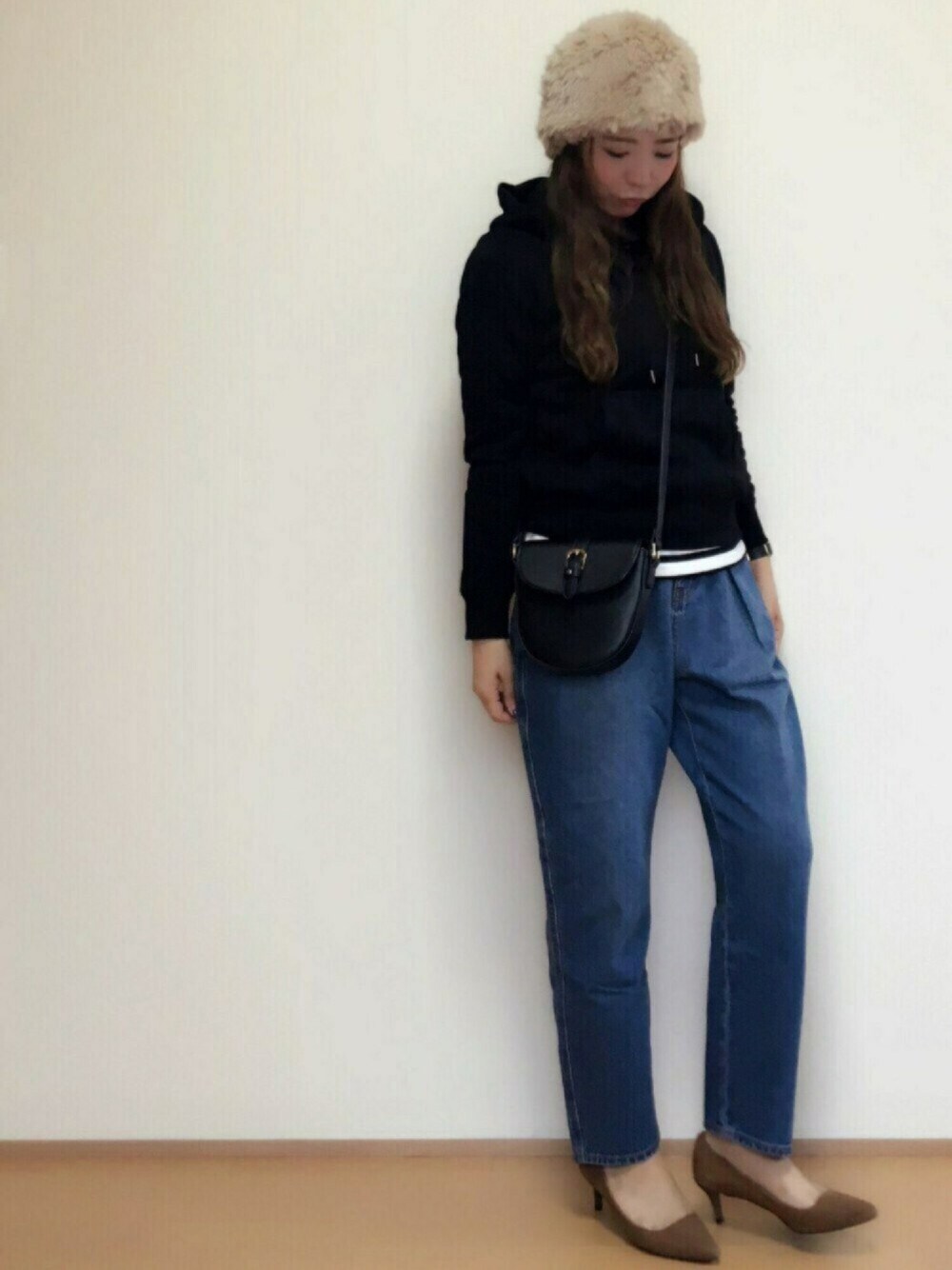 パーカーは、またまたGU😍💕 裏起毛であったかい❤️❤️でも今の季節まだ暑くて汗だくになったしすぐ脱ぎましたが…笑 黒から覗くボーダーが一応ポイント😋💕 頭のファー帽子は10年くらい前に買ったもの♪ 使える使えるーー😍❤️ 髪の毛やっぱりもう少し伸ばそう!!🙆