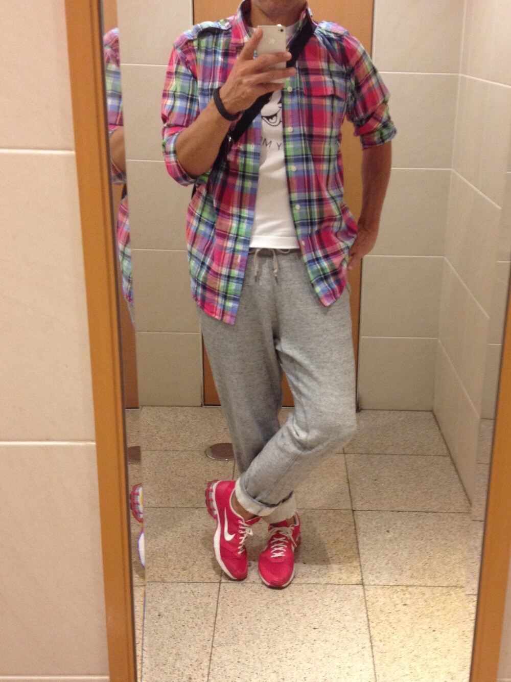 訳あって池袋に来ましたが••• なんかゴチャゴチャしてるな〜 ラルフのシャツ ユニクロのTシャツとスウェット ナイキのシューズ