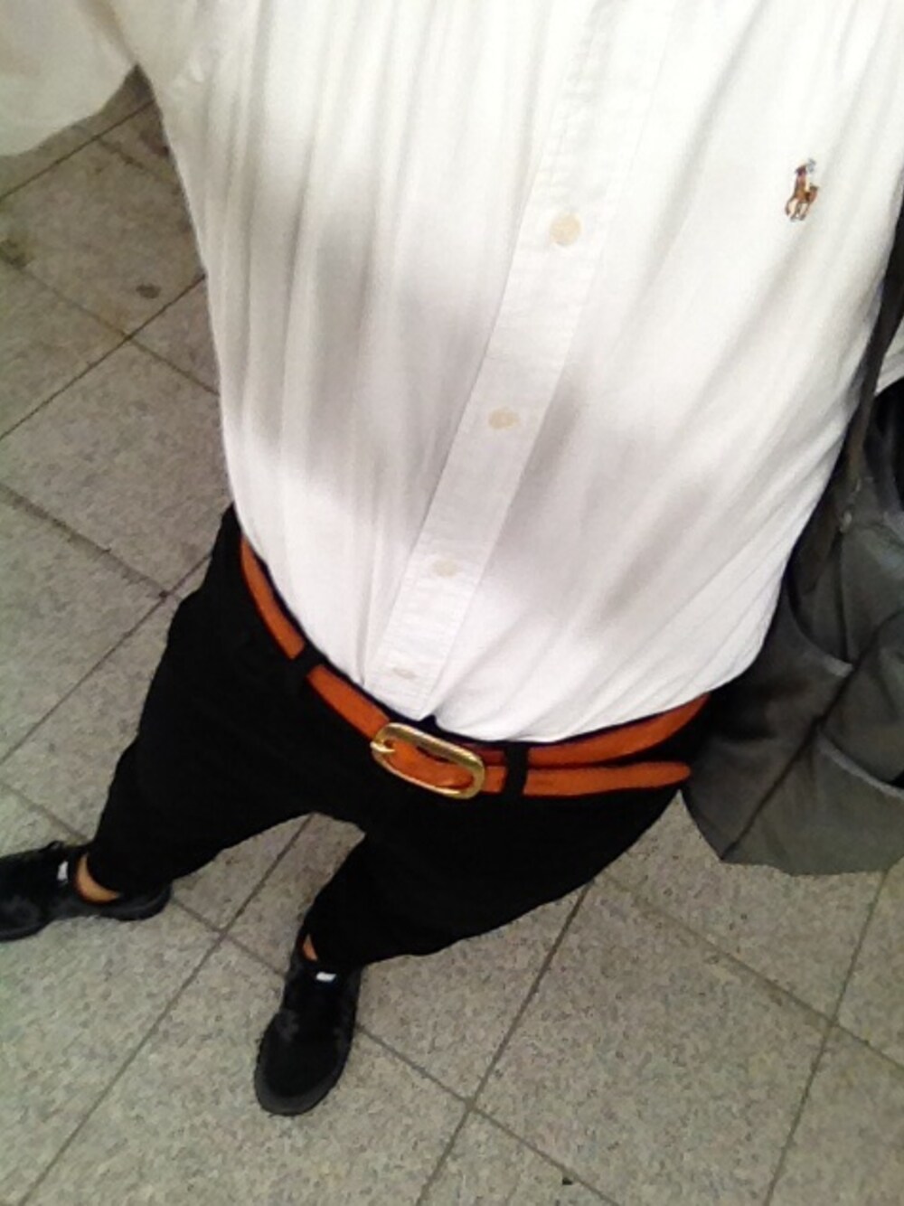 休日出勤終了! ラルフの古着シャツ ユニクロのパンツ ナイキのID 普通の組み合わせ。