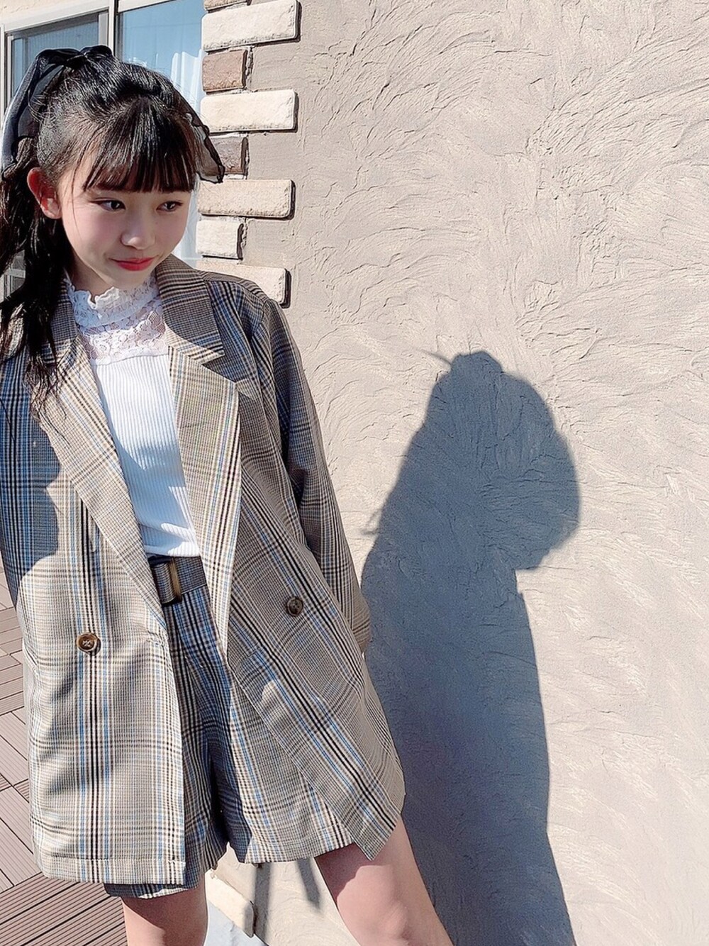 春コーデ☆ テーラードジャケット × ショートパンツ☆着回し抜群のチェック柄のセットアップ