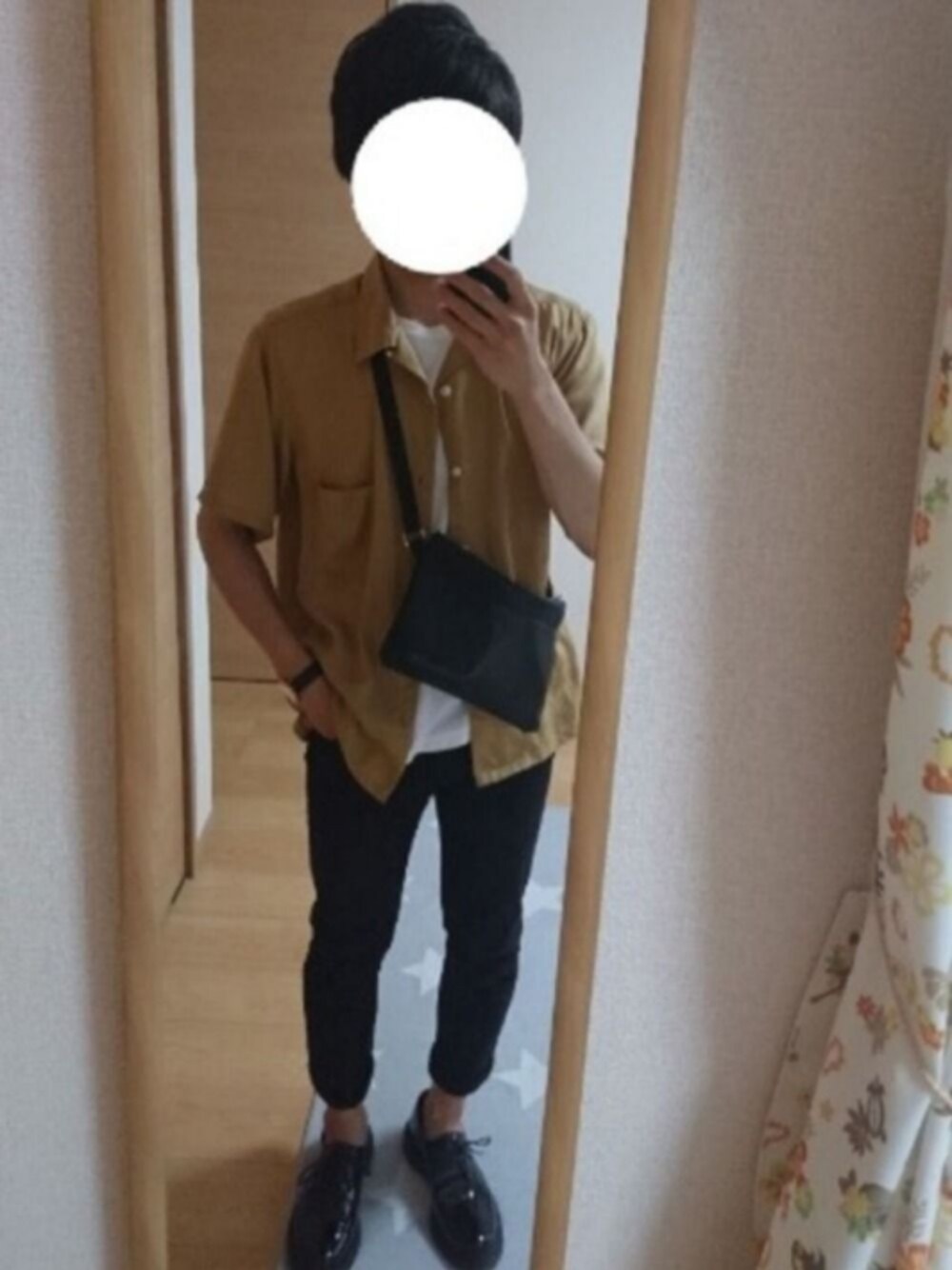 オープンカラーシャツ×革靴🙂 GUのオープンカラーシャツ着心地めっちゃ良くてコスパも良いので男女問わずオススメです✨ ドクターマーチン×ビームスのコラボの靴は歩きやすくて合わせやすいのでヘビロテしてます🗣️